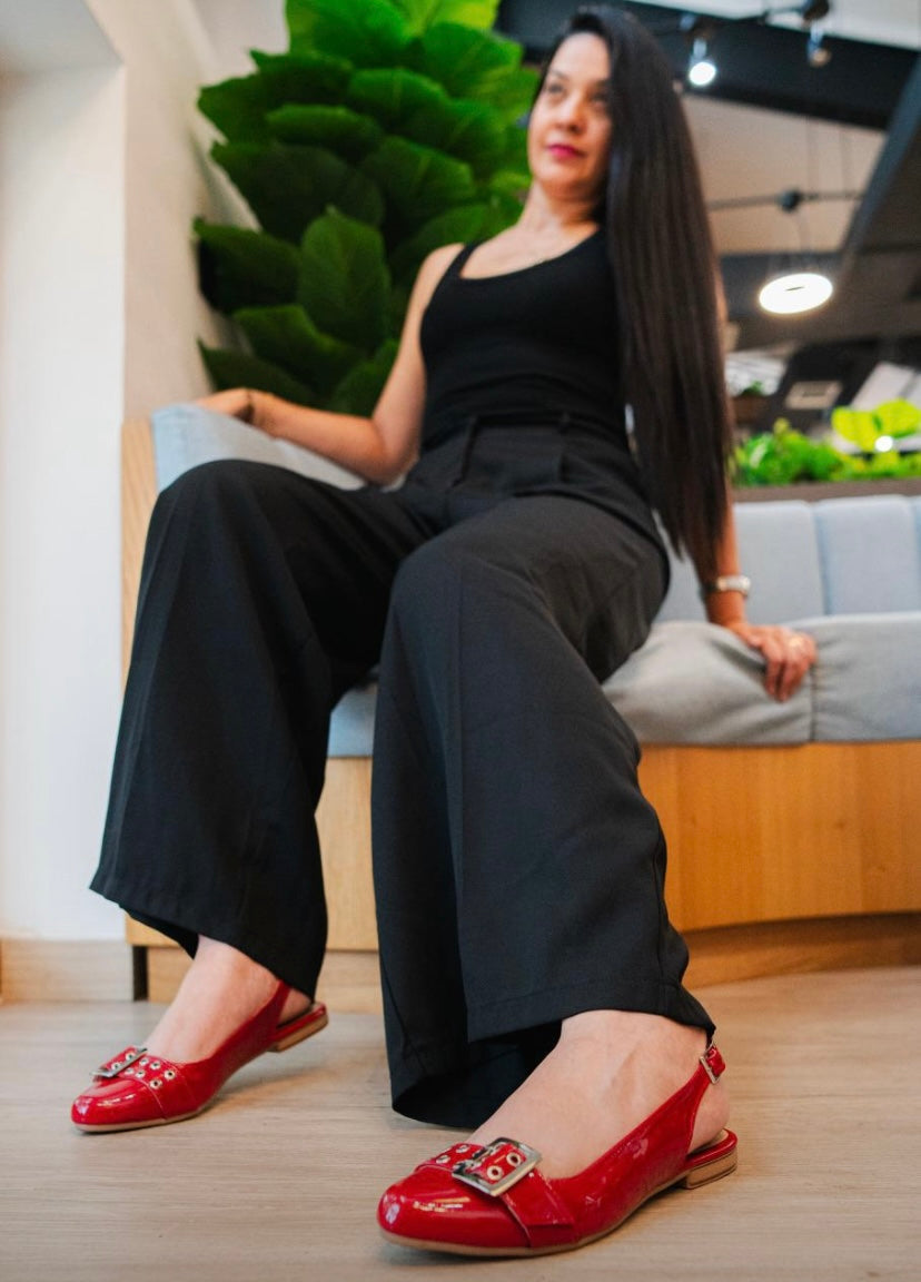 Baletas Tahima mujer Lisa en charol destalonadas con hebilla ajustable y suela PVC